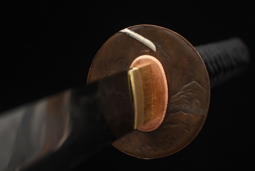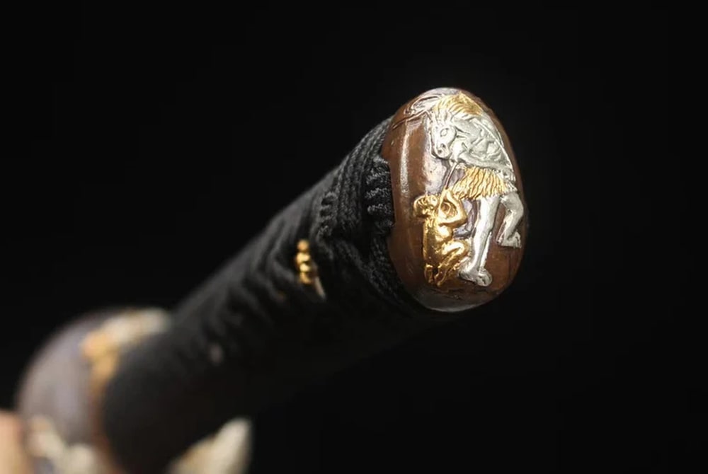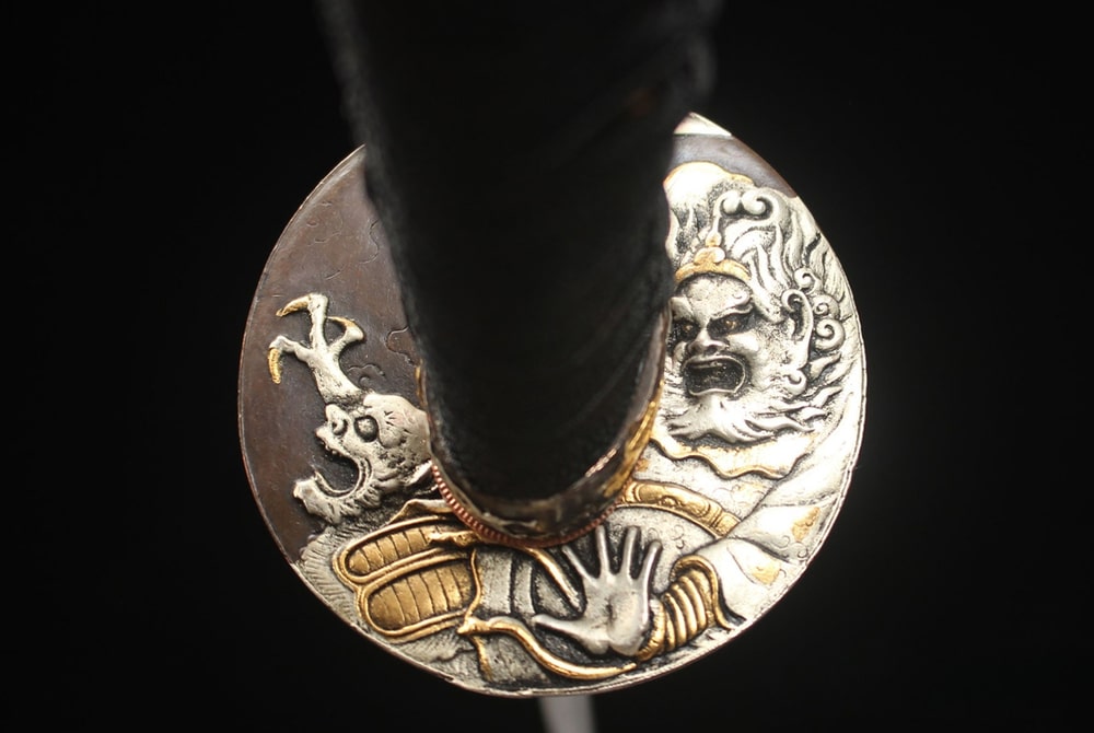 • Tsuba: Brass with gold and silver