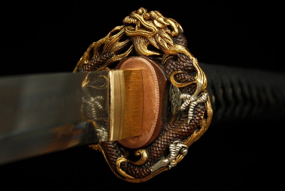 • Tsuba: Brass with gold