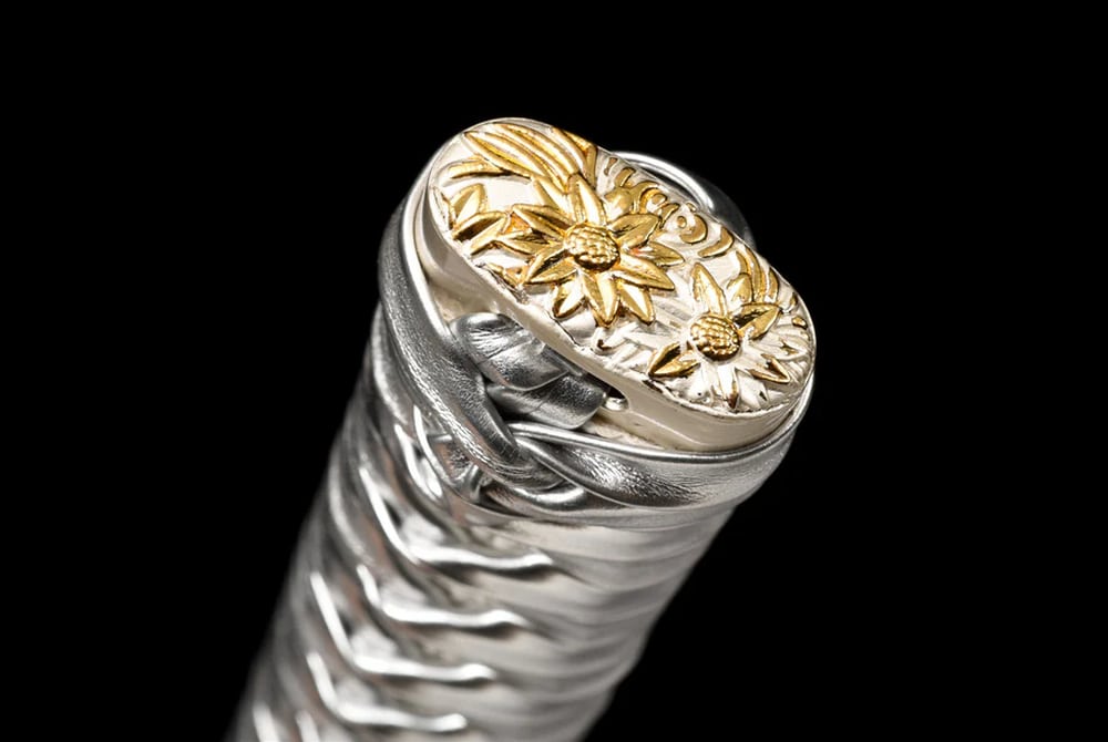 Embody imperial majesty with the Kōtei no Yubiwa, a high-nobility katana forged from 1060 high-carbon steel. Its deep blue blade evokes sovereign calm, while the guard decorated in white and gold reflects the luxury and refinement of a royal court. An exceptional piece for collectors and admirers of truly regal elegance.