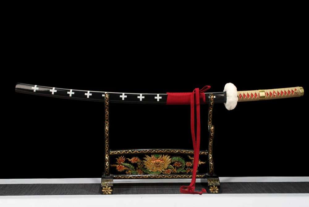 This katana, inspired by the One Piece manga and Trafalgar Law’s sword, is the perfect accessory for anime fans or cosplayers seeking a truly exceptional and authentic high-quality blade. A masterpiece forged in the flames of passion and justice, this premium katana transcends the ordinary, with a blade that captures the dazzling brilliance of a raging storm.