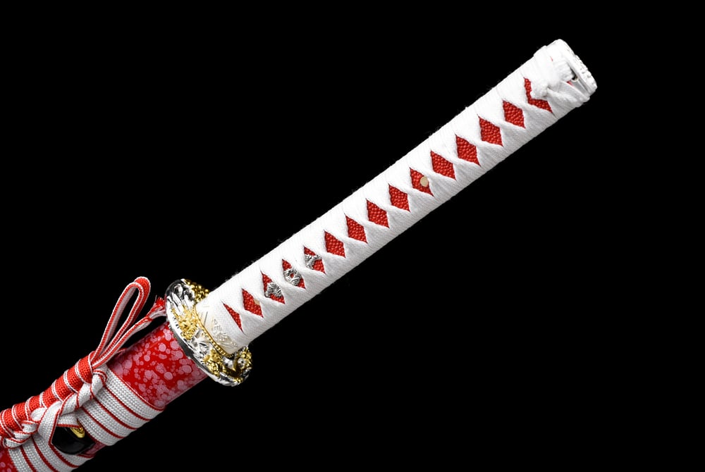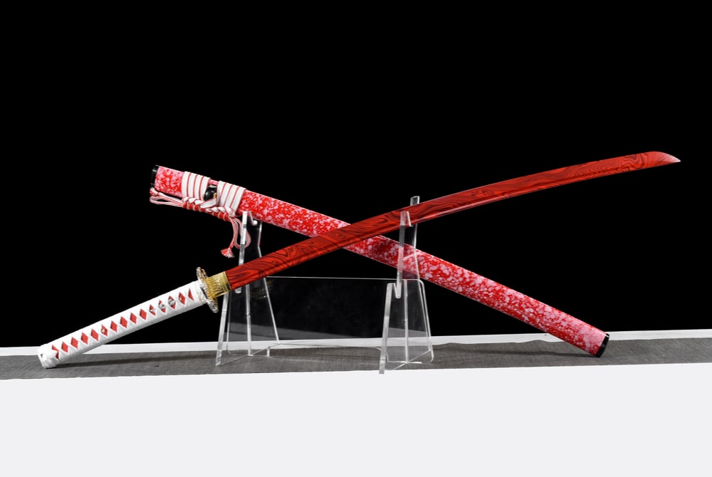 Forged from manganese steel, this katana is as much a tribute to innovation as it is to traditional Japanese craftsmanship. The manganese steel, chosen for its superior robustness, is elevated by a vibrant red finish on the blade, evoking passion and strength.