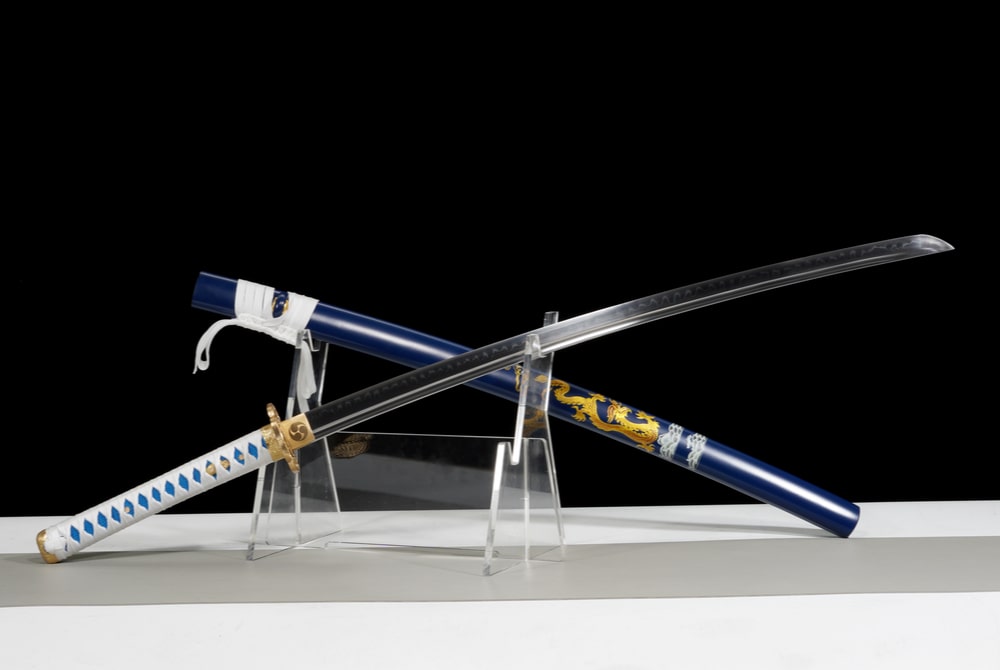 The package includes the katana(s), carefully packed. Additionally, a Japanese fabric bag worth $25 is offered with each katana order. You also have the option to add accessories such as a stand, a certificate of authenticity, a cleaning kit, or a premium storage box to enhance your collection.