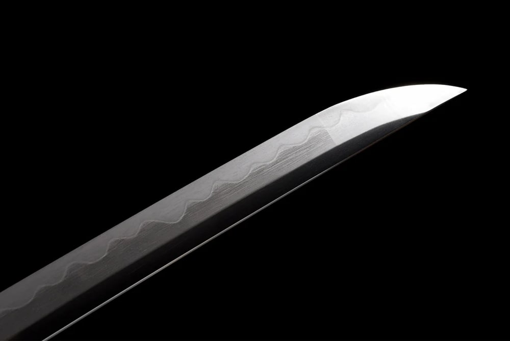 This hand-forged T10 steel full tang katana stands out with its Shirasaya mounting, a traditional Japanese configuration characterised by the absence of a tsuba (guard) and the use of natural wood for both the handle and the scabbard. Originally, this type of mounting was designed to preserve the blade when not in use, while highlighting its beauty and sharpness. Its simple, harmonious appearance reflects the philosophy of the Japanese sword: purity, balance, and inner silence.